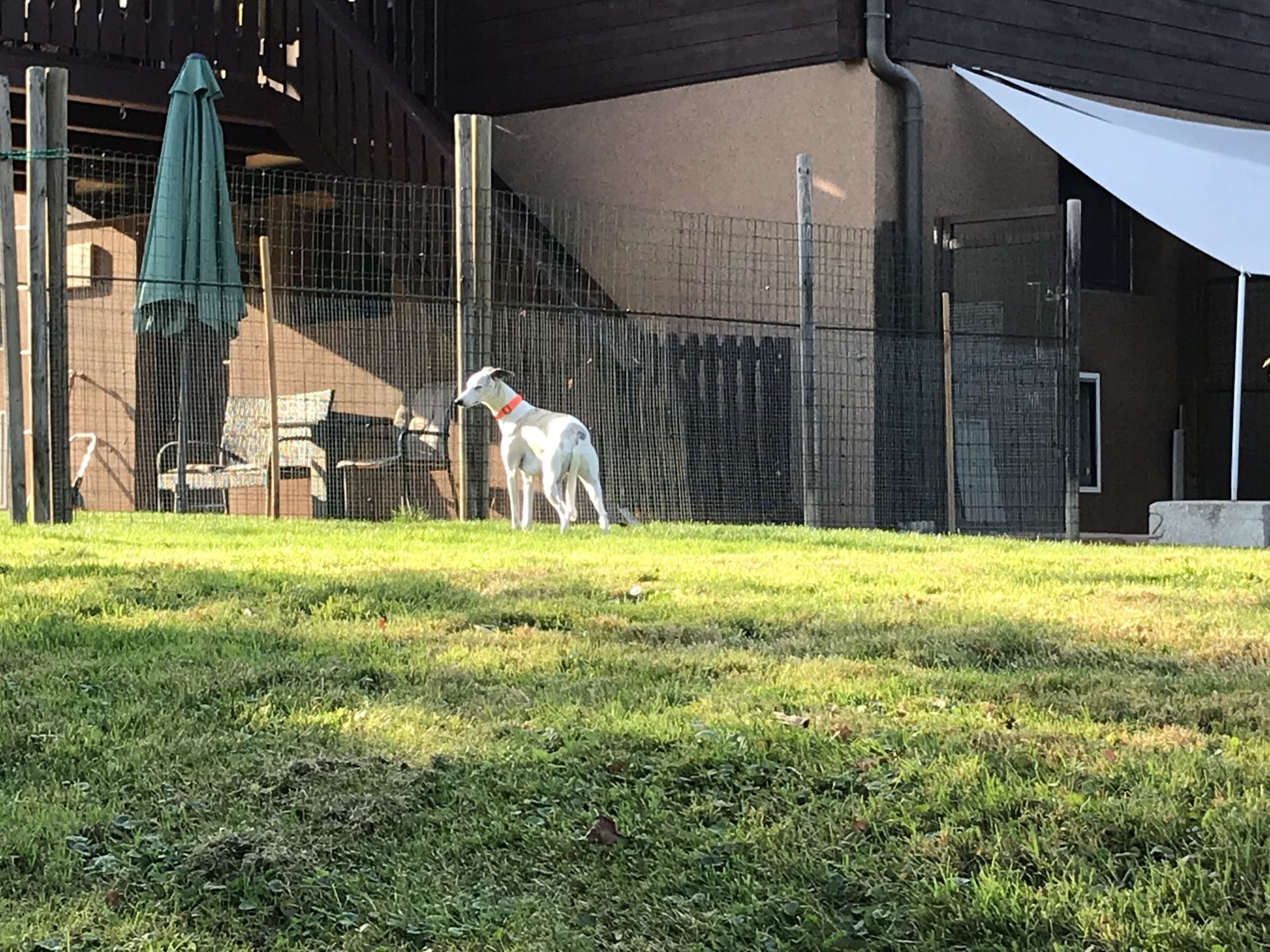 Der sanfte Whippet Rüde „Jaro“ ist sehr Menschen bezogen und konnte an den Probetagen trotz der ganzen Tierpensionsaction nicht so abgelenkt werden, dass er nicht nach seiner Familie Ausschau hielt und hie und da weinte. Ansonsten kamen wir gut miteinander aus und genossen den Garten.