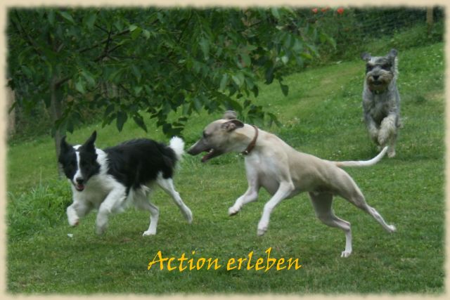 Um optimale Rundumbetreuung gewährleisten zu können, biete ich Platz für Hunde in drei Hunderäumen (teils in Einzelplätze unterteilt) auf eigener Wohnebene im Haus, welche gefliest und mit Bodenheizung versehen, ihren Lieblingen zu jeder Jahreszeit traumhafte Wohnbedingungen auf höchstem Hygienestandard garantieren. Weiters gibt es eine großzügig eingezäunte Außenanlage, um neben den Spaziergängen auch den Freilauf sicherstellen zu können.