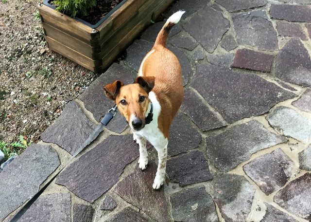 Zum Besichtigungstermin hat Foxterrierrüde "Dino" nicht wirklich Interesse zur Kontaktaufnahme gezeigt und auch mit Lerckerli hat er sich nicht verführen lassen. Bei den Schnuppertagen dann war alles anders - kontaktfreudig, aufgeweckt, hat Streicheleinheiten genossen. Zwar haben sich Bell- und Ruhephasen über den ganzen Tag abgewechselt, doch nach einer entspannten Nacht war ab dem nächsten Tag die Gesamtsituation angenommen. Wir freuen uns auf ein Wiedersehen im kommenden Jahr.